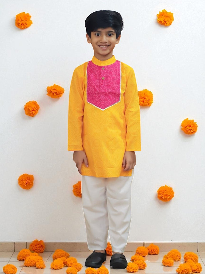 Let your little gentleman steal the spotlight in this elegant ethnic outfit! Designed with traditional flair and modern comfort, this ensemble is perfect for festive occasions, weddings, or family celebrations. The rich fabric and fine detailing add a royal charm, making him look dapper and feel confident.