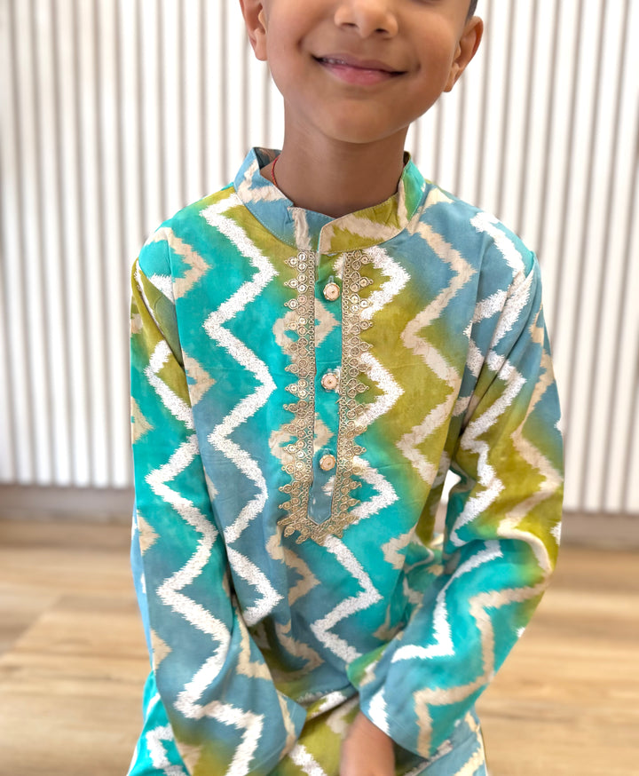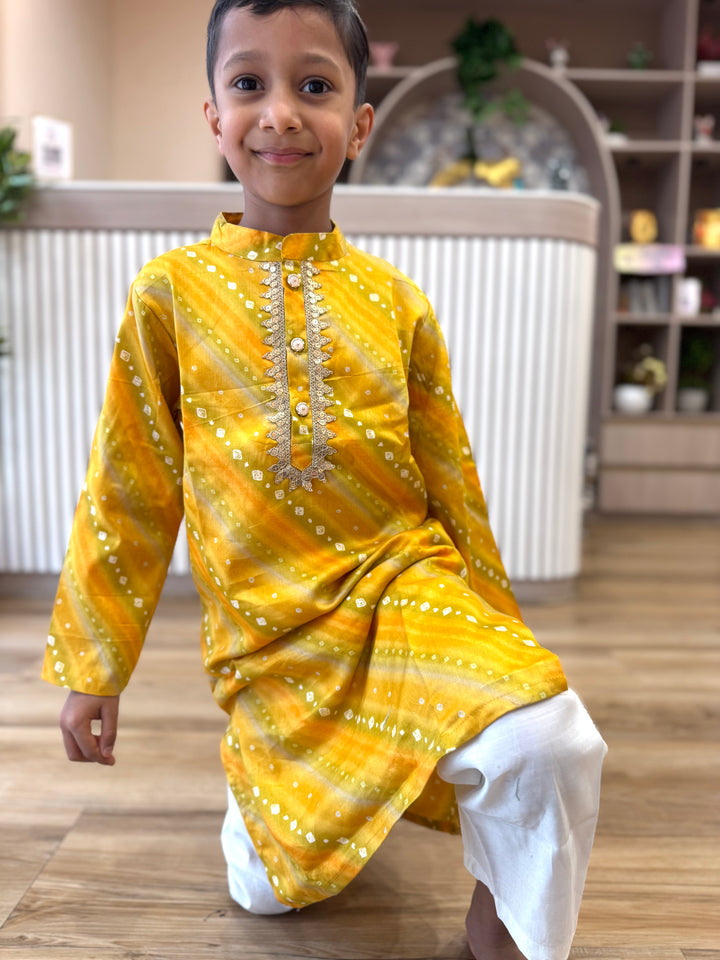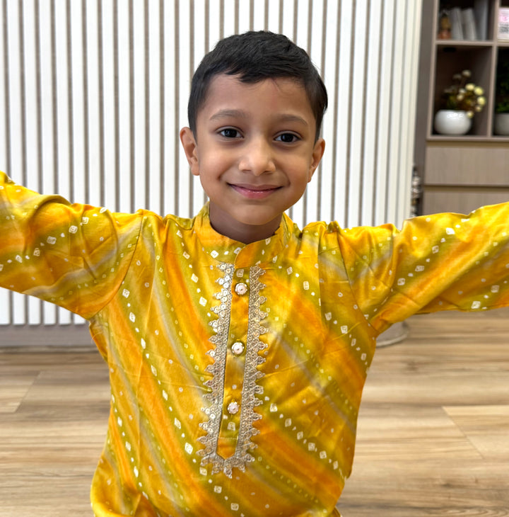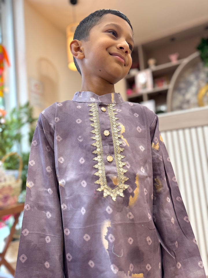 The luxurious sheen and texture of silk elevate the outfit, making it a popular choice for creating a regal and sophisticated look. This elegant traditional outfit, perfect for festive occasions, weddings, and other formal events. Smart Ethnic wear for your little boys.
