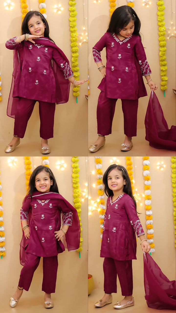 The silky touch and feel of our gorgeous ethnic sets will make your girlie look pretty and elegant. Dress up your doll with this beautiful piece. Our stylish printed short kurti set features stylish designed kurti with simple yet elegant neckline and a palazzo style pants . This graceful style will make her look gorgeous. It can be worn on festivals or family functions or casually.