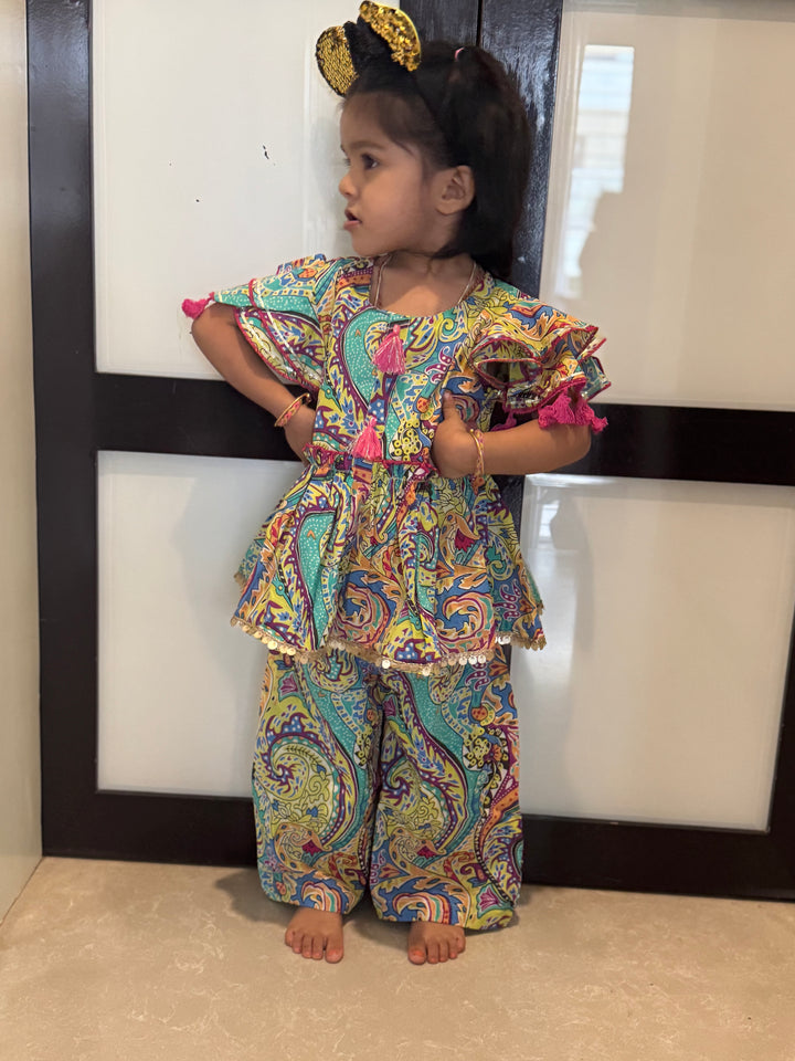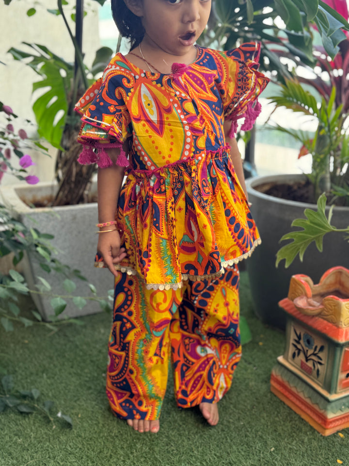 A charming and elegant co-ords are perfect for anytime wear. This dress features a soft, breathable fabric that ensures all-day comfort for your little one. The vibrant floral print adds a touch of beauty.