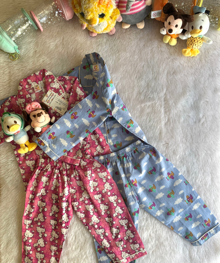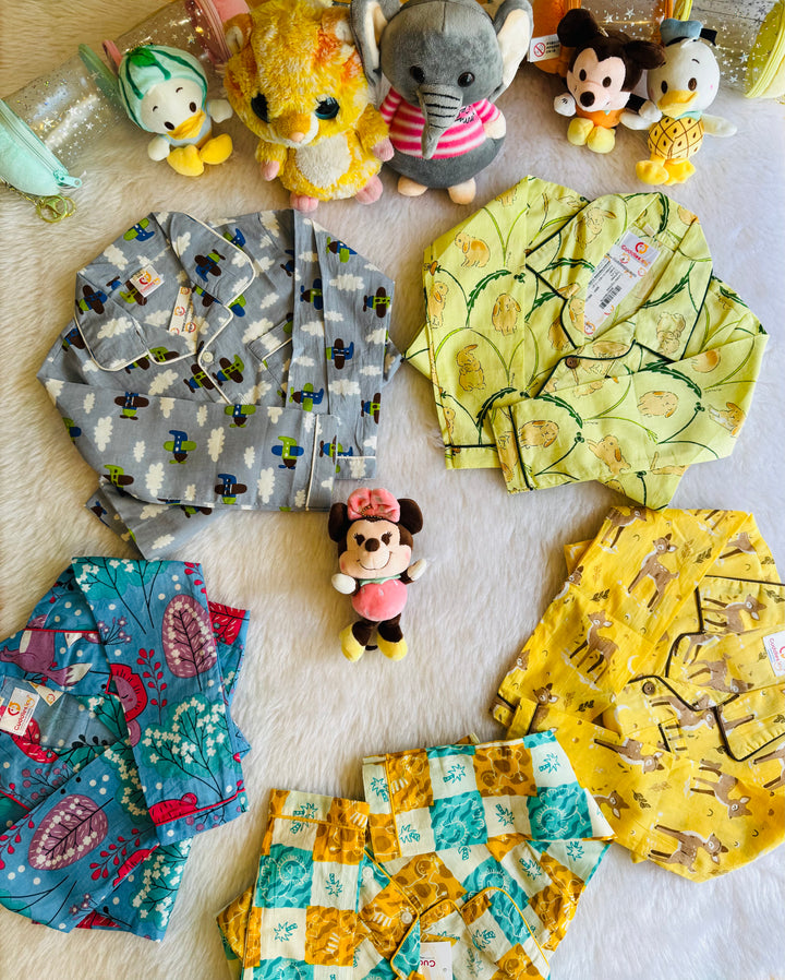 Land Into the world of Sweetest Dreams with Unicorns, Cars, Kites And Kids Favourites. Matching set top and bottom Pyjamas with attractive prints. Its pure cotton, super soft and comfortable.