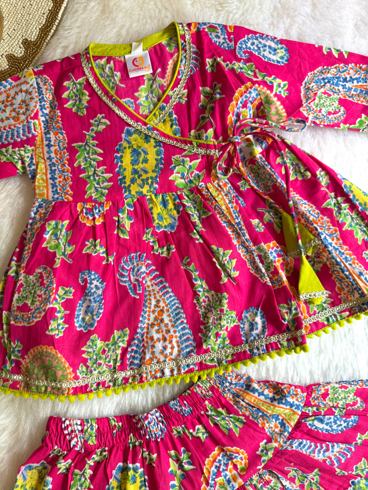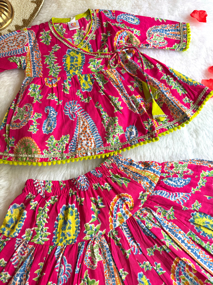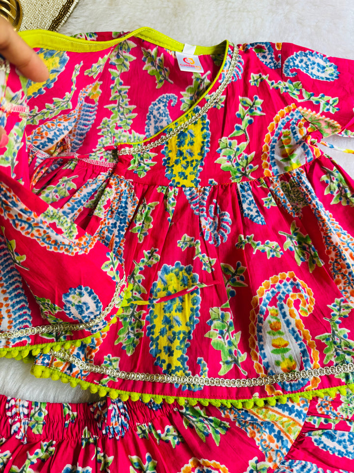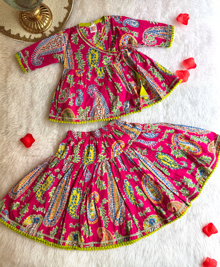 Make your little one shine in this beautiful kids’ ghagra set! Designed with soft, breathable fabric and vibrant colors, this outfit is perfect for festivals, weddings, and special occasions. The flared ghagra (skirt) twirls gracefully with every step, while the matching choli (top) is decorated with laces. Easy to wear and super comfy, this ghagra set will make your child feel like a princess!