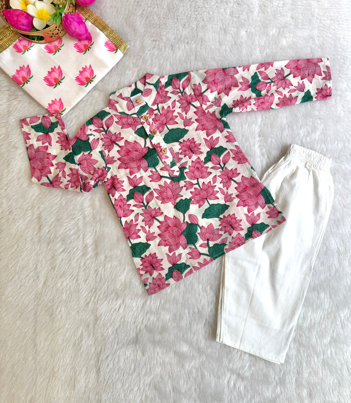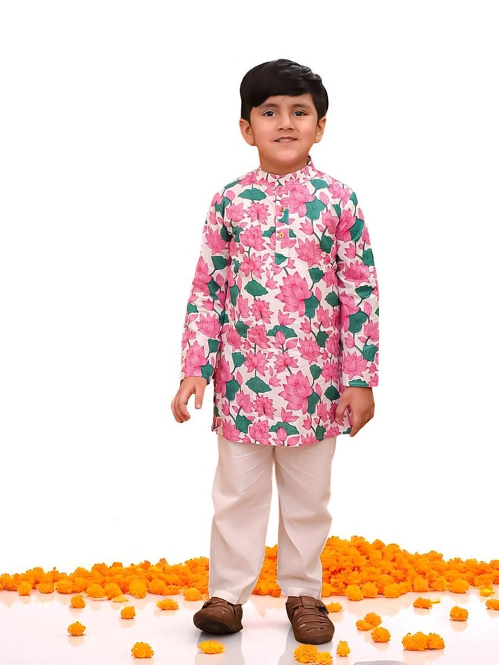 Smart Ethnic wear for your little boys with cute prints. Ethnic motifs Printed Kurta with elastic white pants . This Handsome Set can be worn on special occasions, family functions and your kid can enjoy its comfort whole day.