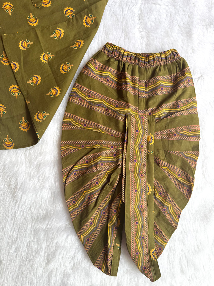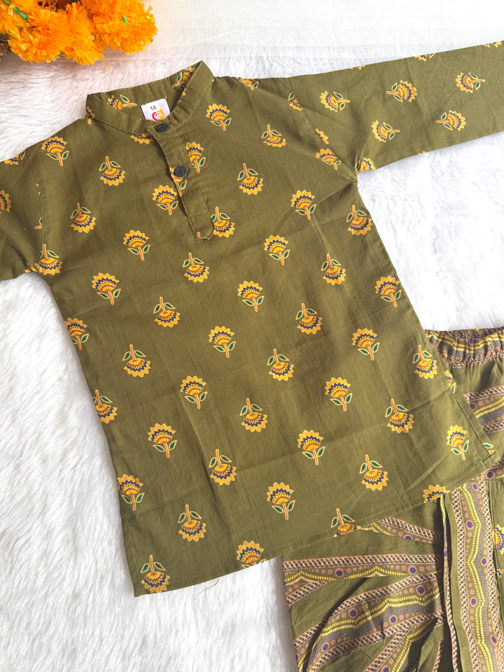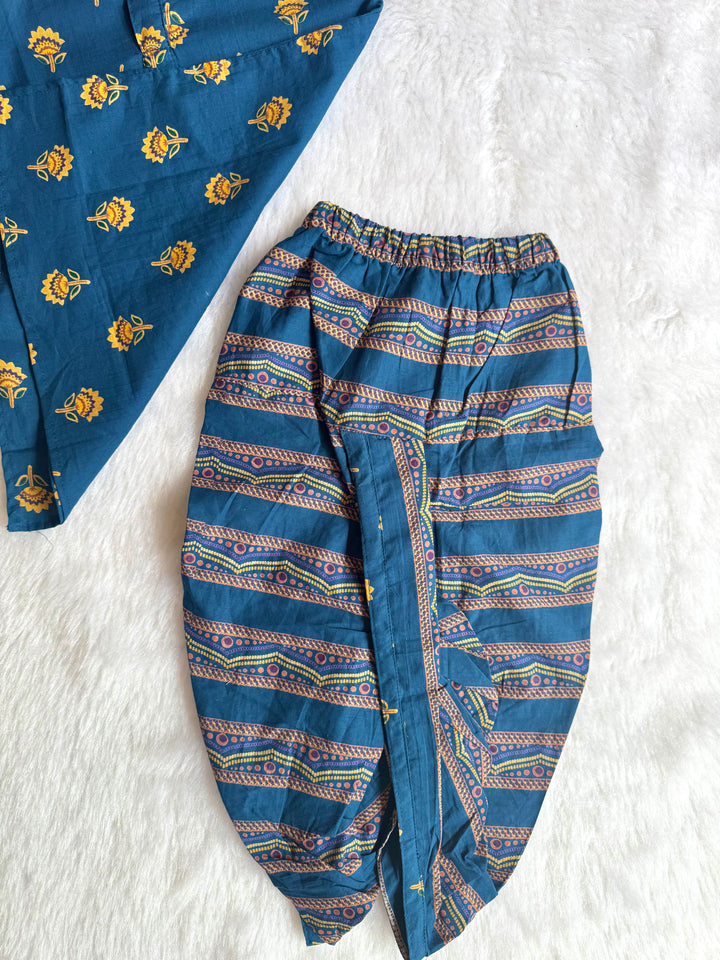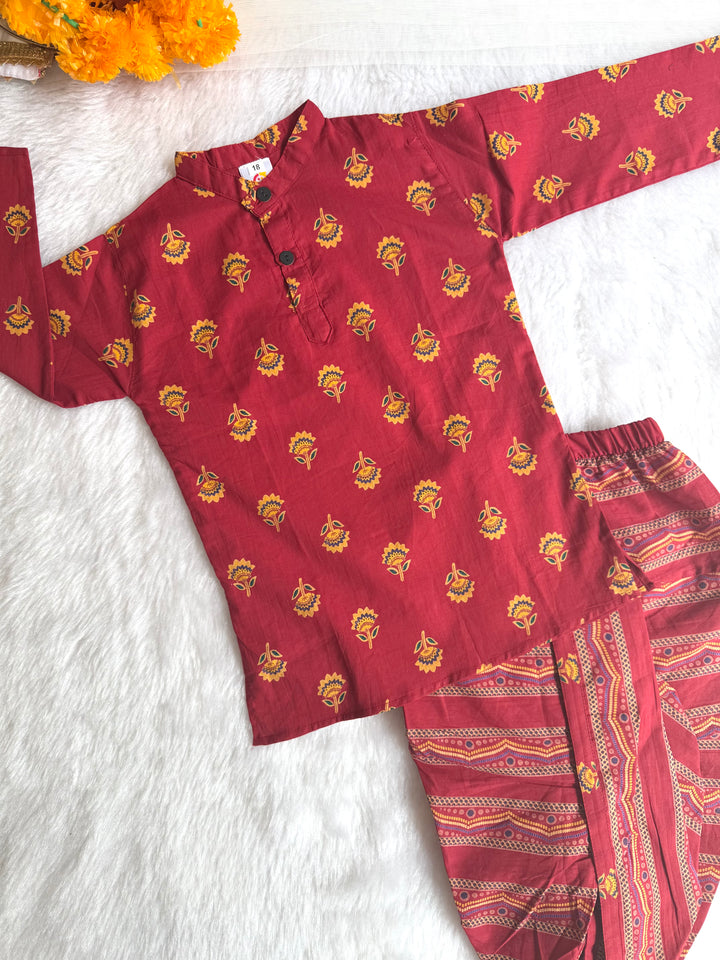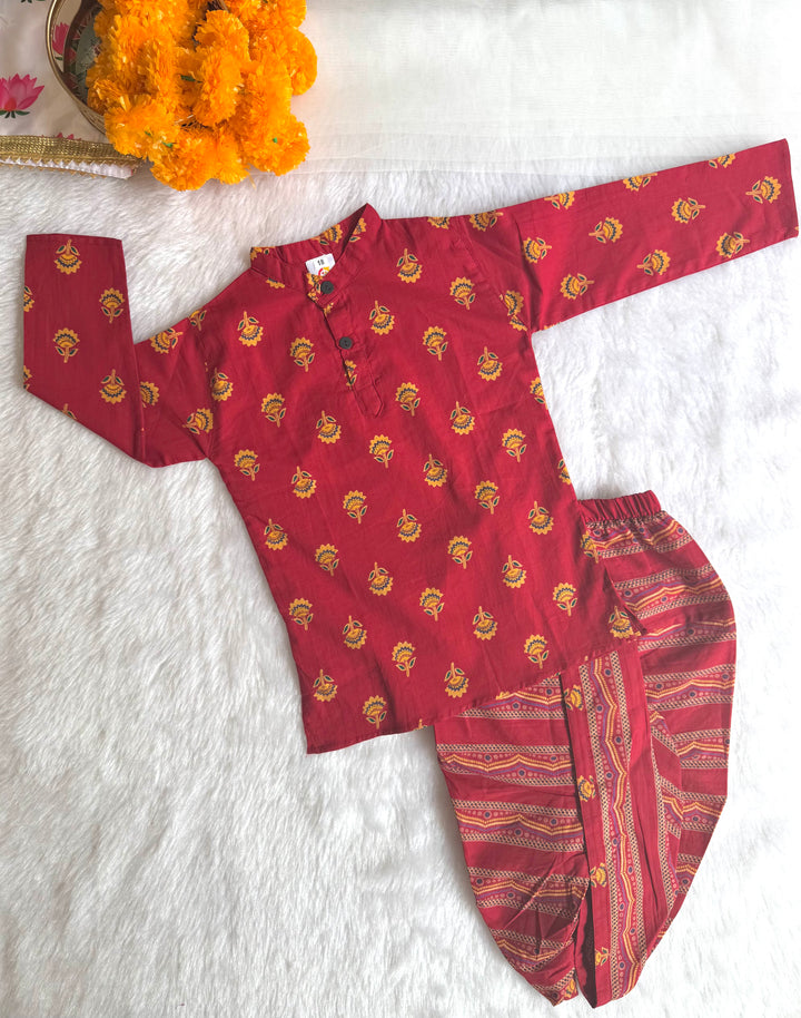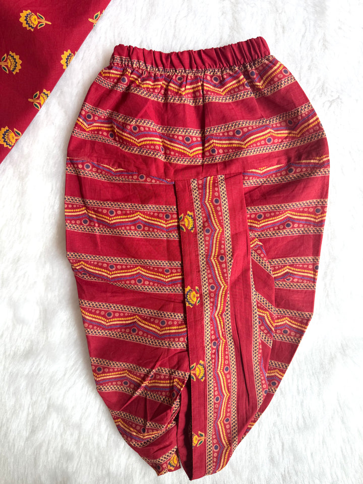 This kids’ ethnic dhoti is designed for comfort and cultural charm. Made with soft, breathable fabric, it features a classic draped look that’s perfect for festive occasions, family functions, and traditional celebrations.