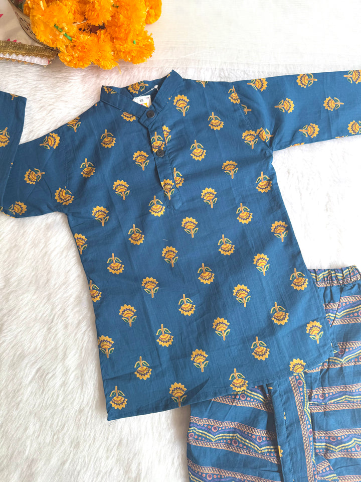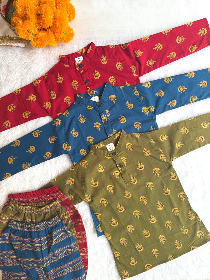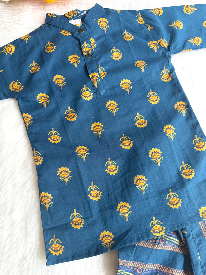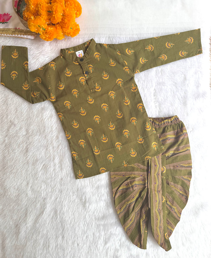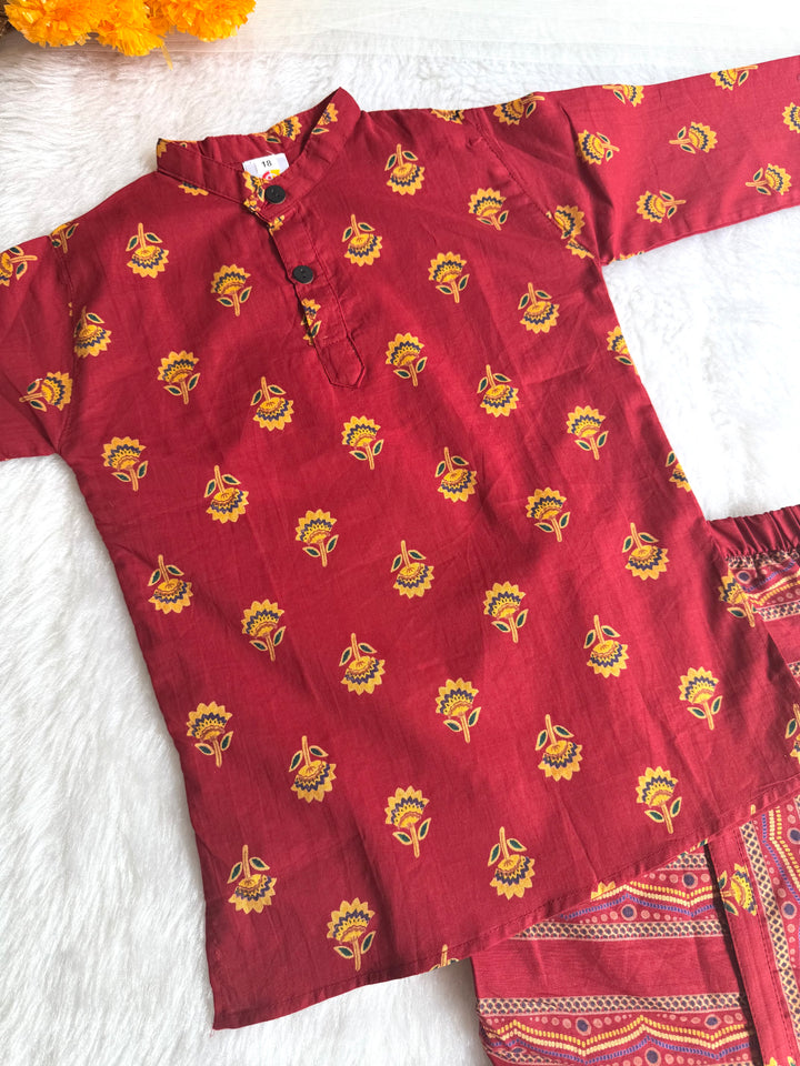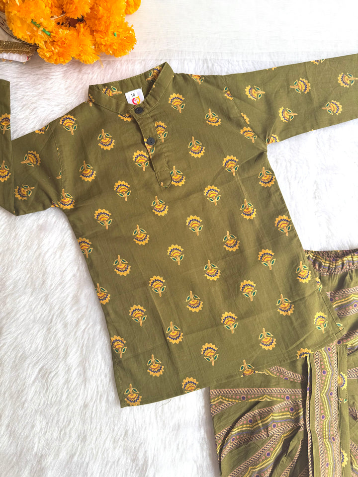 This kids’ ethnic dhoti is designed for comfort and cultural charm. Made with soft, breathable fabric, it features a classic draped look that’s perfect for festive occasions, family functions, and traditional celebrations.