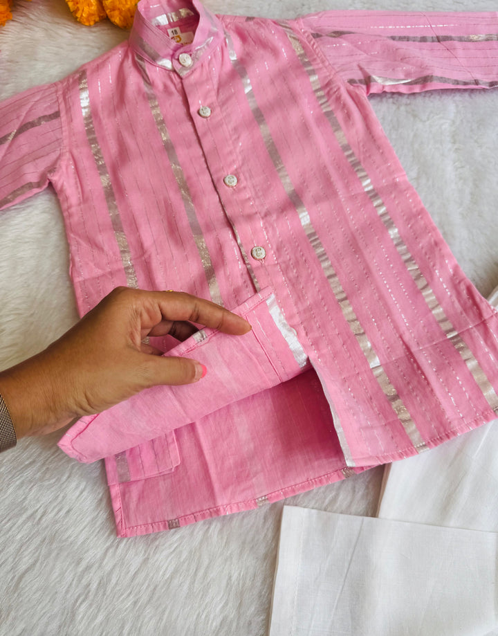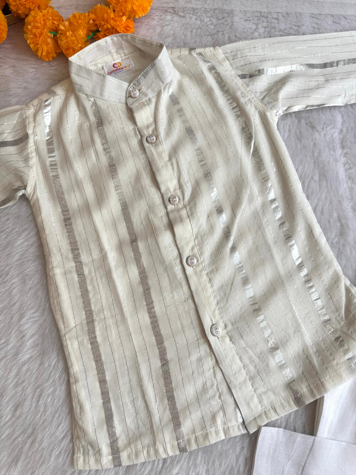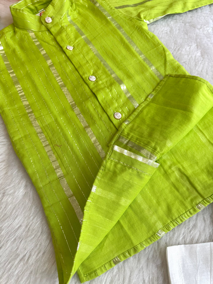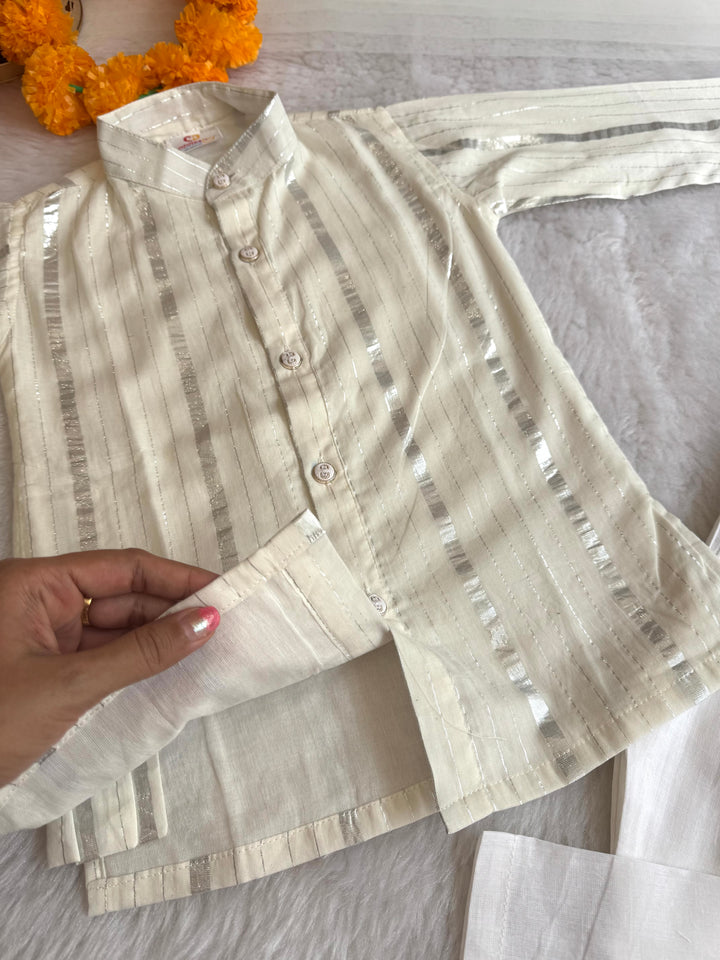 Fabric- Soft Lurex Cotton, with cotton lining inside the kurta and white cotton pyjama.