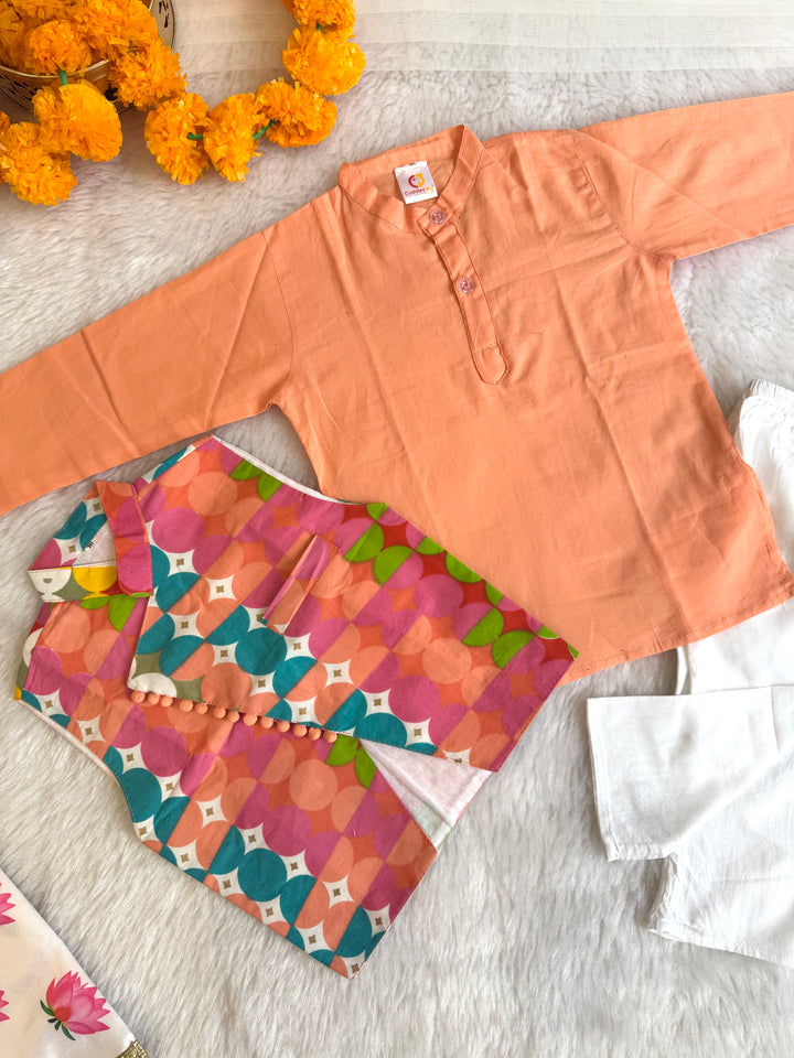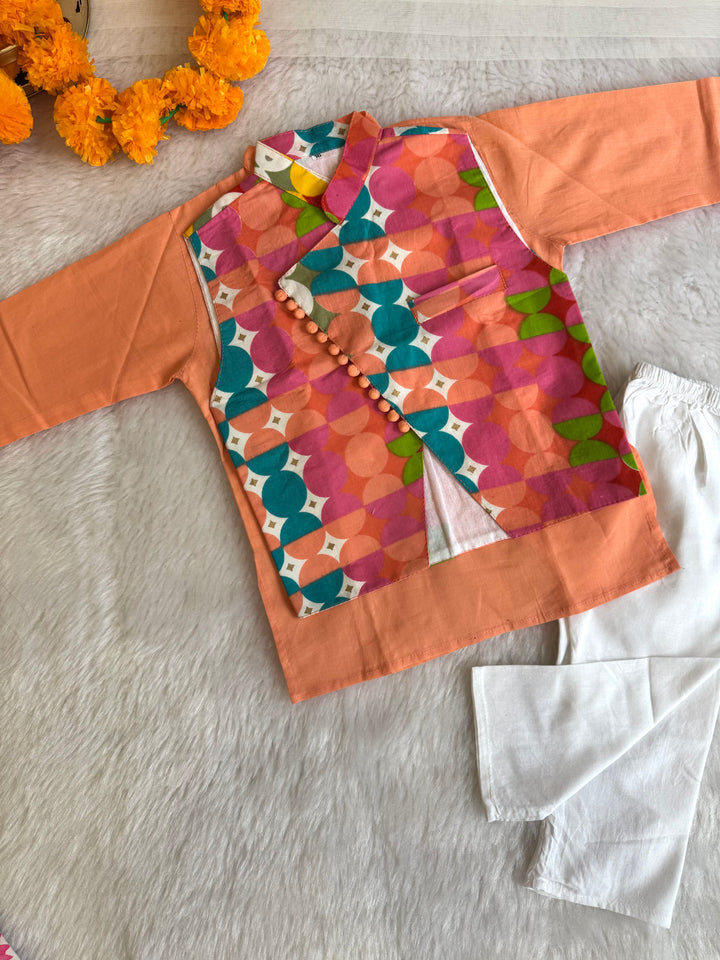 Dress your little one in timeless style with this elegant Boys' Kurta Pyjama Set, perfect for festive occasions, weddings, religious ceremonies, and family gatherings.