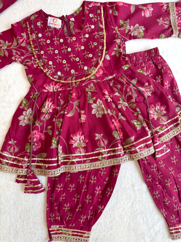 Rose Kurta Afghani Pant Set