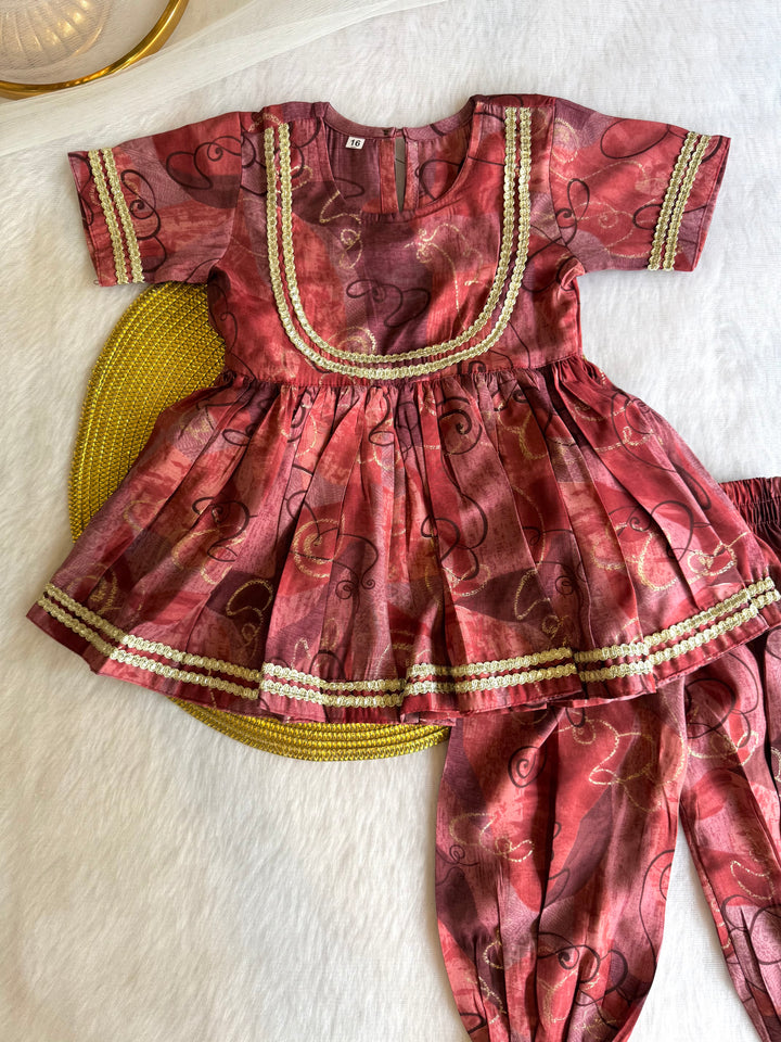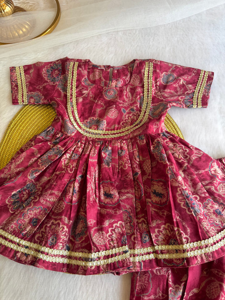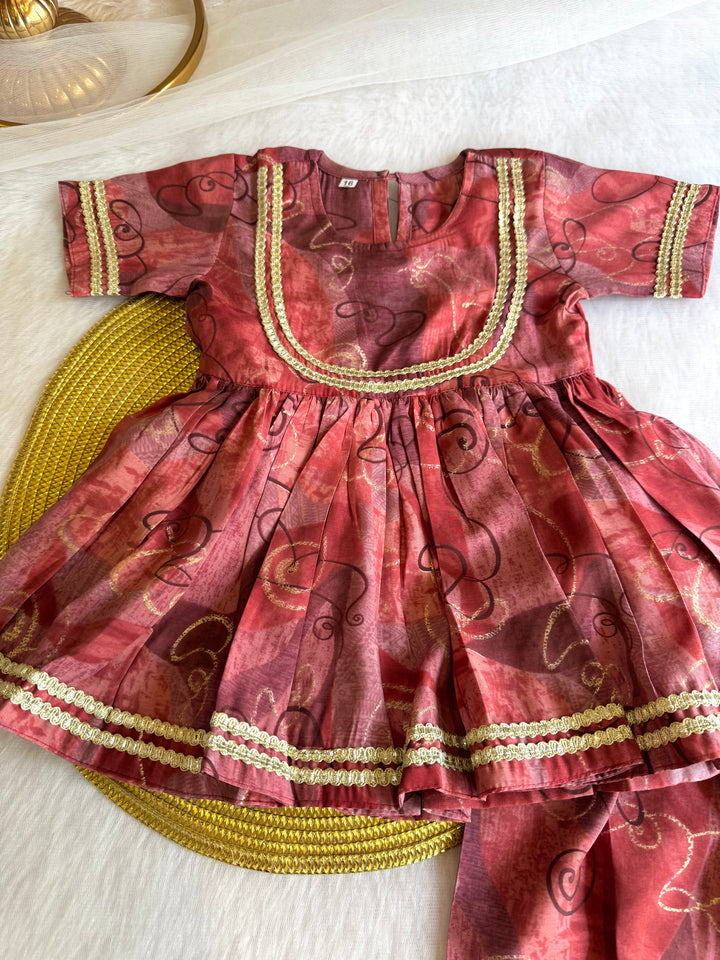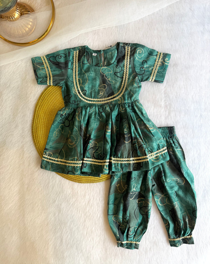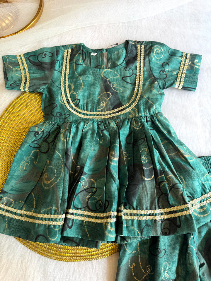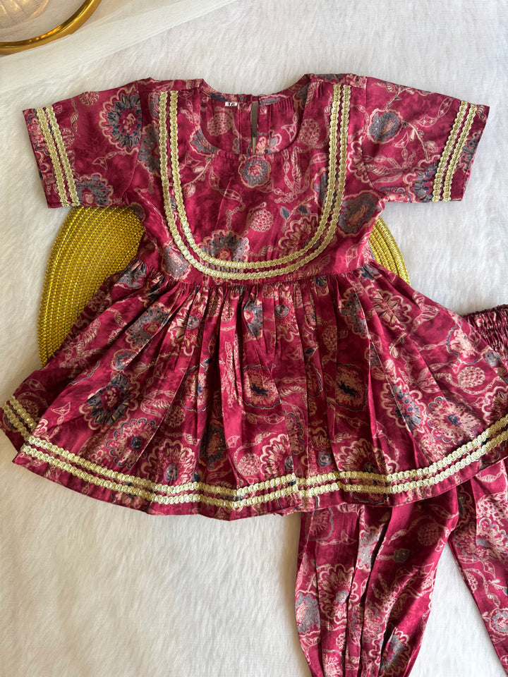 The silky touch and feel of our gorgeous ethnic sets will make your girlie look pretty and elegant. Dress up your doll with this beautiful piece. Our stylish printed kurti set features ethnic printed kurti designed with simple yet elegant neckline and a afghani pant with gottas . This graceful style will make her look gorgeous. It can be worn on festivals or family functions or casually.