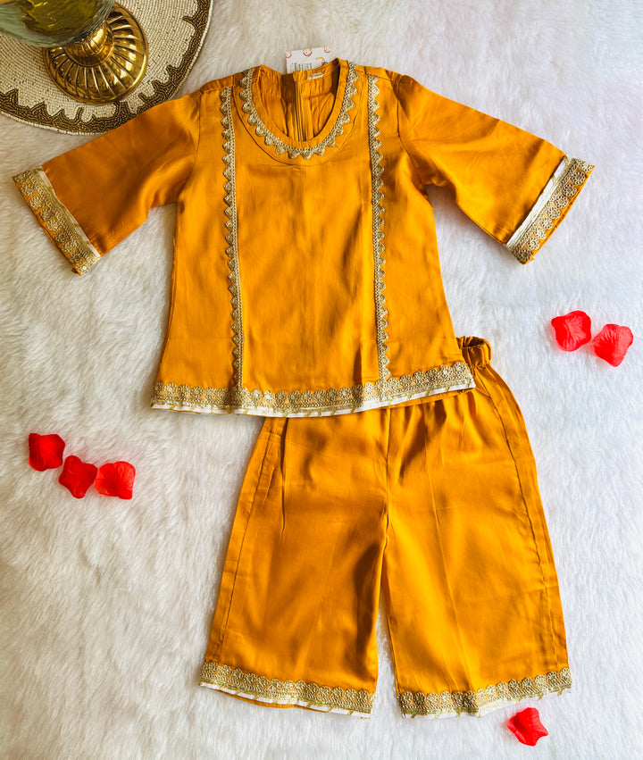 This enchanting festive dress is spun from whispers of glitters and hints of stardust. With its soft, flowing layers and delicate shimmer, it dances with every step your little one takes. The bodice glows with fine lace embroidery and just a touch of sparkle, like the first stars of the evening sky. Whether she's celebrating under fairy lights or candle glow, this dress makes her feel like magic in motion.