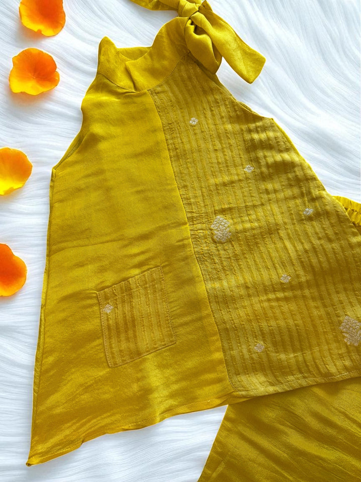 Top has a halter neck style , can be tied into beautiful bow and fine detailing of brocade print all over. Top has soft Mul cotton lining inside.
